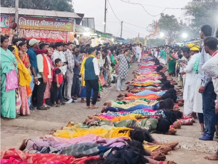 Angarmoti Temple CG: छत्तीसगढ़ के धमतरी जिले के गंगरेल स्थित मां अंगारमोती मंदिर अपनी आस्था और प्राचीन परंपराओं के लिए पूरे प्रदेश में प्रसिद्ध है। दीपावली के बाद पहले शुक्रवार को यहां देव मड़ई का आयोजन होता है। इस अवसर पर यहां हजारों श्रद्धालुओं की भीड़ उमड़ती है। इस बार भी आयोजन के दौरान संतान प्राप्ति की कामना के लिए 800 से अधिक महिलाएं पेट के बल जमीन पर लेट गईं, जबकि पारंपरिक विधि अनुसार बैगा (स्थानीय पुजारी) उनके ऊपर से गुजरते हुए गर्भगृह तक पहुंचे। मान्यता है कि इस विशेष विधि से मां अंगारमोती कृपा करती हैं और संतान का आशीर्वाद देती हैं।