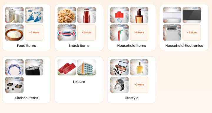- रोजमर्रा की जरूरत की चीजें: आटा, चावल, दाल, दूध आदि।