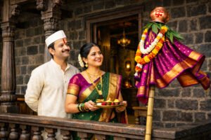 गुड़ी पड़वा पर पारंपरिक वेशभूषा का विशेष महत्व होता है। महिलाएं इस दिन नौवारी साड़ी पहनती हैं। पुरुष धोती-कुर्ता या कुर्ता-पायजामा धारण करते हैं। खान-पान में भी इस दिन खास पकवान बनाए जाते हैं, जैसे श्रीखंड और खीर, जो उत्सव की मिठास को बढ़ाते हैं।
